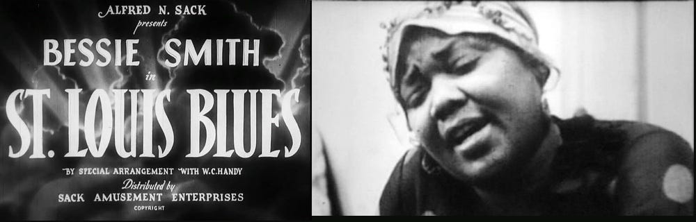 St Louis Blues pertenecería a esa categoría de películas conocidas como soundies, algo así como el precedente histórico de los videos musicales de hoy en día. Posee además el enorme valor añadido de ofrecernos la rarísima oportunidad de ver a la emperatriz del blues, Bessie Smith, en imágenes, interpretando a una mujer abandonada por su amante que llora sus penas en la barra de un bar, como describe melodramáticamente la letra de la canción.